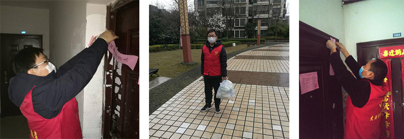 來自無(wú)錫創(chuàng)投集團(tuán)聯(lián)合黨支部的孫超、朱曉春兩名黨員志愿者正在為為社區(qū)的隔離戶提供服務(wù)(貼封條、送外賣、送快遞、清理生活垃圾等)。