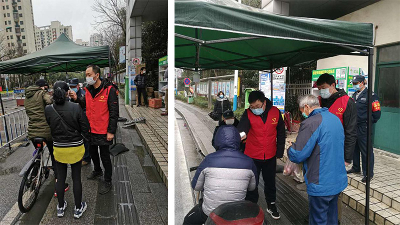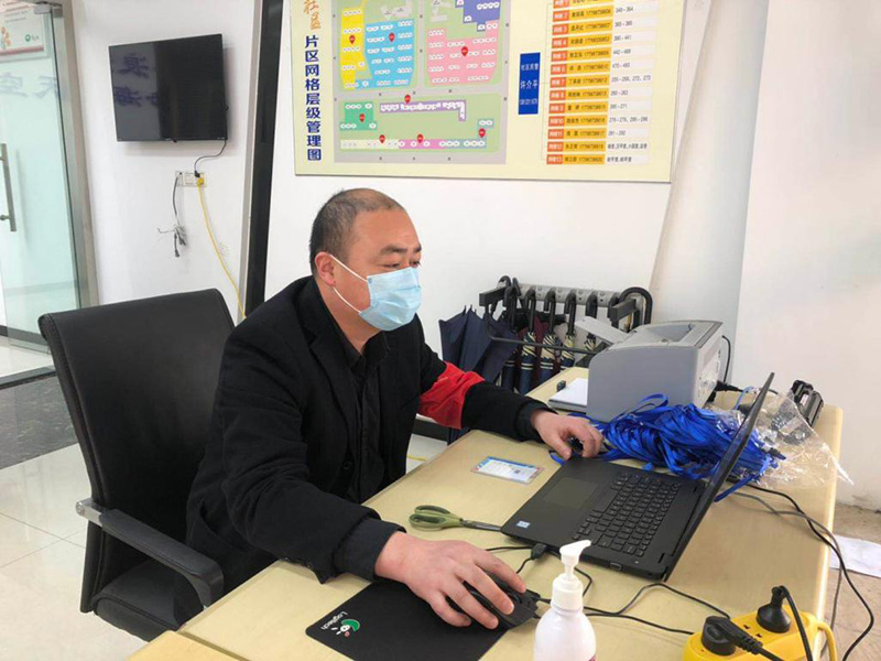 朱曉春、孫超駐守在周新苑四期的北門入口,協(xié)助保安檢查進(jìn)入小區(qū)人員的出入證,掃描錫康碼,測(cè)量體溫。